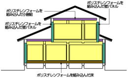 プレウォールの住まいは、建物を柱と梁、壁パネルと一体床で支えます。